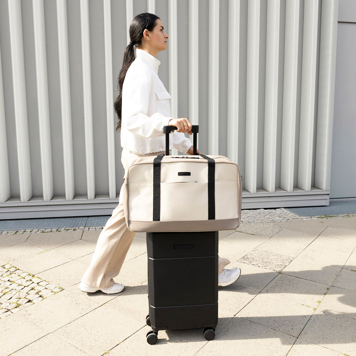 Que ce soit pour aller à la salle de sport, pour un court voyage ou pour une escapade le week-end, le sac Omasu est le compagnon idéal. Avec son design élégant et ses fonctions bien pensées, ce semainier allie fonctionnalité et esthétique. La fermeture à glissière de haute qualité s'ouvre largement et permet d'accéder facilement aux deux compartiments intérieurs. Un panneau de feutre à l'intérieur offre une protection, mais peut être facilement replié pour ranger le semainier dans l'armoire et gagner de la place. Une poche zippée supplémentaire et un support pour les tapis de yoga et les chariots se trouvent à l'extérieur.